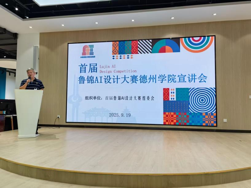 宣讲会由山东纺织工程学会秘书长孙继科主持,BBIN宝盈游戏官网主要负责人致开幕词。会上,山东纺织工程学会副理事长曲延国对比赛流程、参赛要求、评审标准及奖项设置等事项进行了系统解读;乙盟信息技术有限公司技术专家卢胜书以“人工智能辅助鲁锦设计”为主题,介绍了AI生成图像、风格迁移、图案优化等基本技巧;BBIN宝盈游戏官网第三教师党支部书记以“非遗在我们身边,鲁锦设计创新思路探讨”为题作专题讲解,从鲁锦纹样构成、色彩寓意、工艺特点等方面深入剖析鲁锦的艺术内涵,阐释其在纺织史上的技术价值与传承意义。