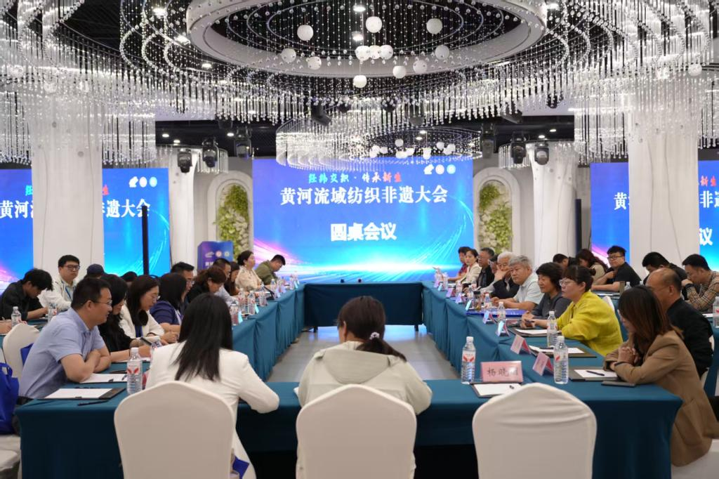 在圆桌会议环节,党支部书记带领“强国行”团队成员与专家学者、非遗传承人、学校师生等围绕非遗传承、保护与创新发展等议题展开深入交流,并达成多项合作共识,为黄河流域纺织非遗的传承与发展注入新动力。