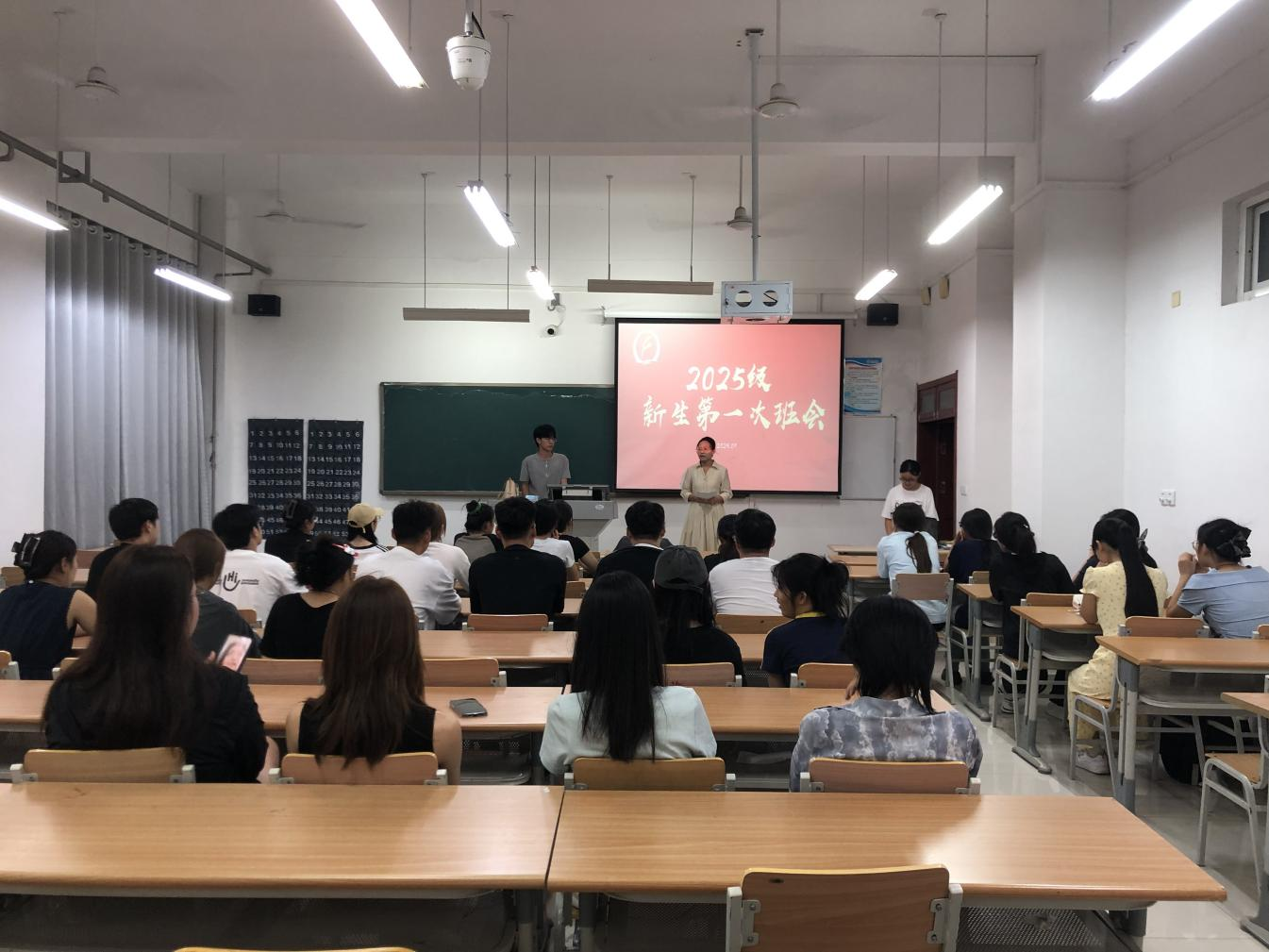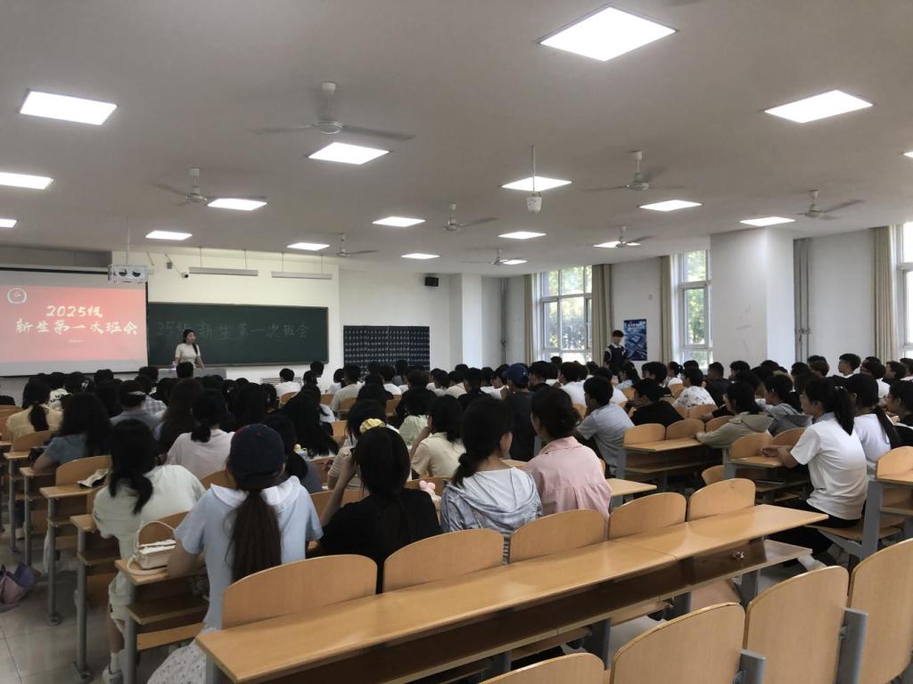 班会伊始,各班辅导员、班主任对新生的到来表示热烈欢迎,并详细介绍了学院的发展历程、专业特色、师资力量与就业前景,鼓励新生们树立远大理想,珍惜大学时光。随后,辅导员、班主任带领新生集中学习了习近平总书记在纪念中国人民抗日战争暨世界反法西斯战争胜利80周年大会上的重要讲话精神,通过回顾抗日战争的壮阔历史进程,引导学生进一步坚定理想信念、厚植爱国情怀。在安全教育方面,老师结合真实案例系统讲解了防诈骗、防火灾等安全知识,系统介绍了校纪校规、请假流程、奖惩与资助等制度,并开展了宿舍、食堂、网络等文明礼仪教育;针对秋季传染病高发季,老师普及了防控知识,提醒同学们注意个人卫生与体育锻炼。会议尾声,各班学生班助就即将开始的军训时间安排、纪律要求、物资准备和安全防护等内容作了详细说明,并组织新生进行了简短的自我介绍,增进了同学间的相互认识与了解。