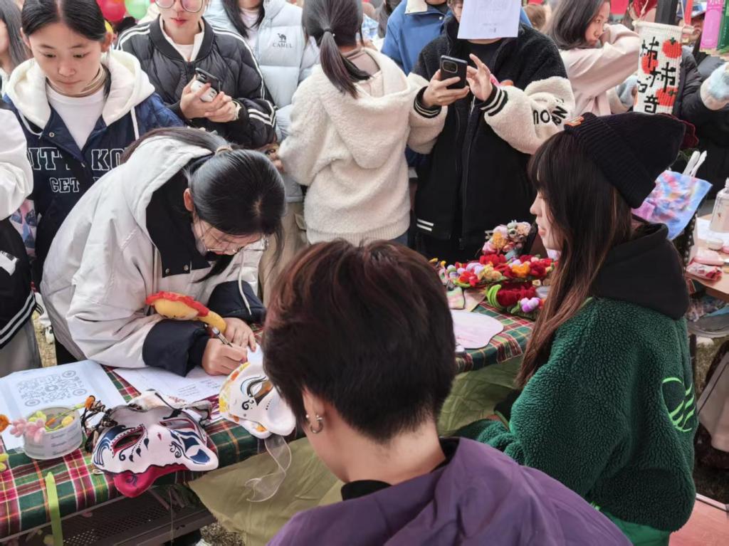活动现场,各社团通过特色展演、成果展示与互动体验等多种方式,全面展现社团特色与文化内涵。社团负责人就日常活动及招新要求等内容向同学们作了详细介绍,并对同学们咨询的问题进行了细致解答。各社团亮点十足,星之采模特社通过现场走秀,展示了时尚风貌与专业素养;e漫DIY社团设置了迷你扎染体验区,让同学们亲身感受手工制作的乐趣;子衿汉服社则通过汉服形制讲解与古典服饰展演,传播中华传统服饰文化。活动现场气氛热烈,吸引了大量同学报名。