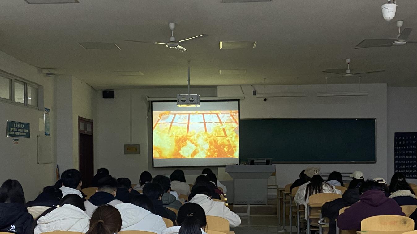 本次活动放映的影片是《烈火英雄》,该影片以惊心动魄的镜头语言,真实再现了重大火场的危急险情与消防救援人员舍生忘死、逆火而战的英雄壮举。观影现场,同学们凝神屏息,深受震撼,当影片展现消防员为守护城市安全、人民生命财产安全而奋不顾身的场景时,消防安全不再是停留在纸面的规定条文,而是化为了对生命最直接的敬畏与守护,让大家深刻认识到“隐患险于明火,防范胜于救灾”的现实意义。该影片生动诠释了消防员忠于职守、勇于担当的崇高精神,使同学们对日常宿舍用电规范、掌握逃生自救技能的重要性有了直观认知和理解。